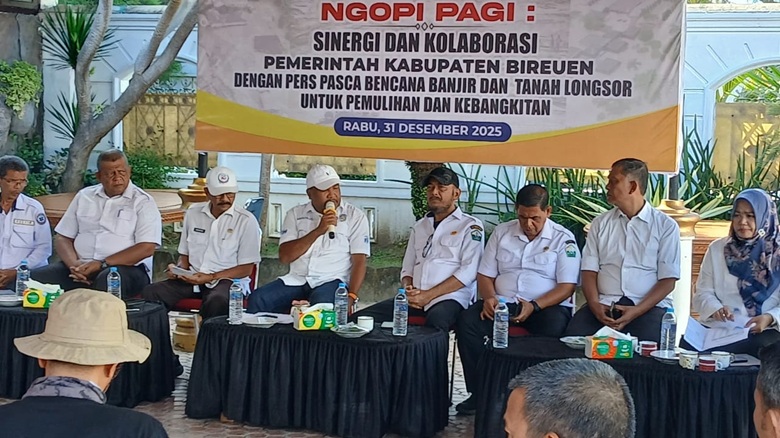 Disampaikan Bupati Kabupaten Bireuen, H Mukhlis kepada sejumlah wartawan, saat ngopi pagi dalam rangka sinergi dan kolaborasi Pemkab Bireuen dengan pers pasca bencana banjir dan tanah longsor untuk pemulihan dan kebangkitan, Rabu (31/12/2025) pagi di Pendopo.