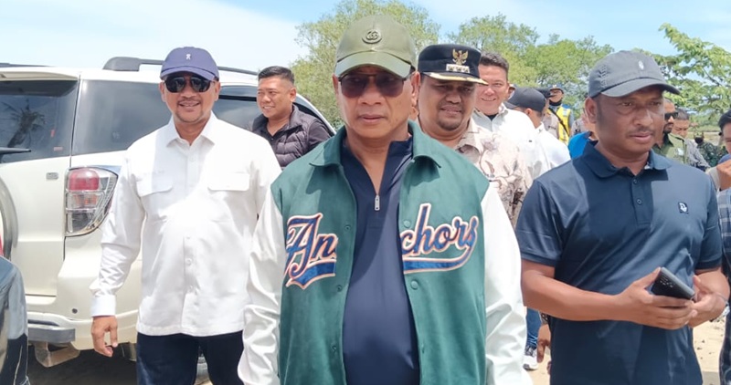 Anggota DPR RI H Ruslan Daud (HRD) didampingi Wakil Ketua Kadin Aceh Abdul Hadi Abidin (Adi Maros) saat melihat langung Pembangunan IJD TP Pukat, Aceh Timur. Foto : Ilyas Ismail freelinenews.com