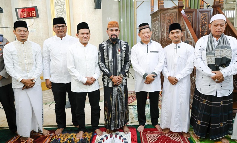 Bertindak sebagai imam salat Jumat adalah Ustaz Ar-Rayyan Maulana Zikri, hafiz 30 juz yang juga merupakan putra Bupati Al-Farlaky.