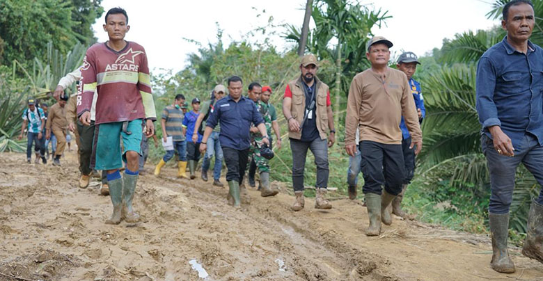 FREELINENEWS.COM | ACEH TIMUR – Bupati Aceh Timur Iskandar Usman Al-Farlaky bersama Tim penanganan bencana daerah menorobos jalan berlupur dari Kecamatan Penaron menuju Kecamatan Serbajadi yang selama ini dilaporkan terisolir akibat banjir bandang yang melanda daerah ini.
