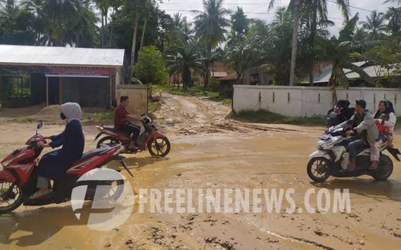 Pantauan freelinenews.com, lebih kurang 100 meter jalan daerah itu berlumpur, sehingga mengganggu arus transportasi arah Medan- Banda Aceh. Terutama kendaraan roda dua yang dikhawatirkan tergelincir akibat lumpur yang menutupi badan jalan.