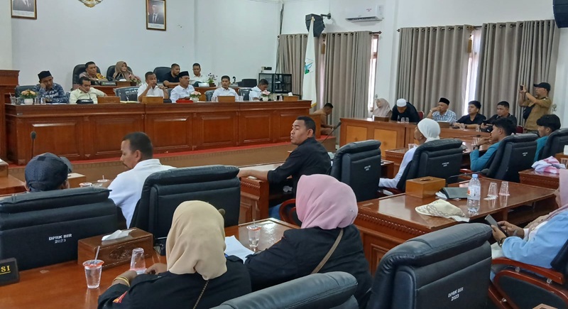 Ketua DPRK Bireuen, Juniadi, SH dan para wakil Ketua dan sejumlah anggota dewan menerima audiensi perwakilan Gerakan Aliansi Masyarakat (GAM) Bireuen, Senin (9/2/2026) diruang sidang dewan. Rahmat Hidayat/freelinenews.com.