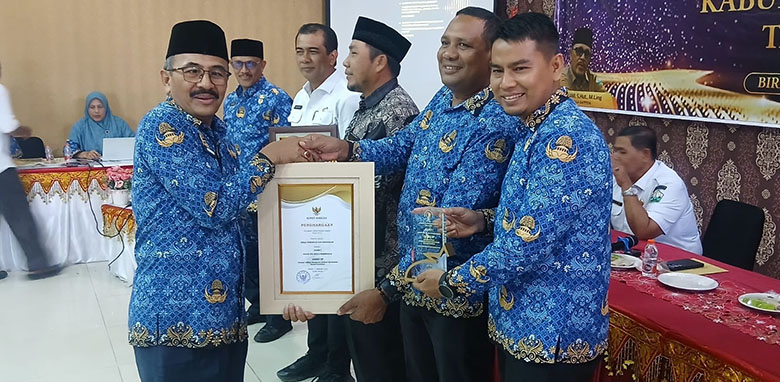 Penghargaan diserahkan dalam acara penganugerahan Lomba Inovasi Daerah tahun 2025 yang digelar Badan Perencanaan Pembangunan Daerah (Bappeda) dibuka Bupati H Mukhlis yang diwakili Pj Sekda Hanafiah, di Oproom Setdakab, Rabu (17/12/2025) siang.