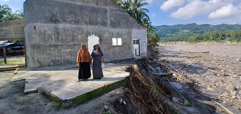 Razali didampingi istri dan Juriati Ali kepada wartawan media ini dilokasi mengisahkan bahwa banjir bandang itu terjadi, Selasa (26/11/2025) malam, air sungai naik dan merusak kebun dan rumah warga berada jauh 100 meter ke selatan dari tepi sungai awalnya.