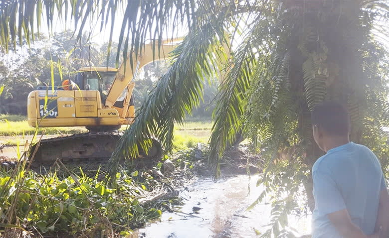 “Akibat sungai di daerah ini sumbat dengan semak dan pohon rumbia, mengakibatkan ratusan hektar sawah irigasi di empat desa tersebut tergenang dan tidak bisa turun ke sawah saat musim tanam tiba,” kata Saiful (40) Keuchik Seunubok Buya.
