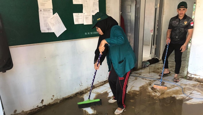 FREELINENEWS.COM | BIREUEN – Para peserta Kuliah Kerja Mahasiswa (KKM) Tematik Universitas Islam Kebangsaan Indonesia (UNIKI) Kabupaten Bireuen bersama BEM dan dosen. Melaksanakan pembersihan fasilitas umum yang terdampak banjir bandang atau hydro metereologi.