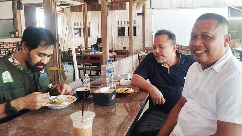 Ketua DPP PA dan atau Gubernur Aceh Mualem saat makan mie isntan di Beje cafee di Aceh Timur. [Poto : Ilays Ismail)
