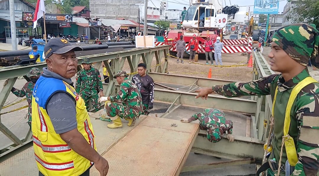 FREELINENEWS.COM | BIREUEN –Pembangunan jembatan baeley untuk menyambung jembatan rangka baja Kutablang, di jalan lintas nasional Banda Aceh-Medan putus diterjang banjir bandang satu bulan lalu, bisa selesai dan dibuka Sabtu (27/12/2025) pagi.