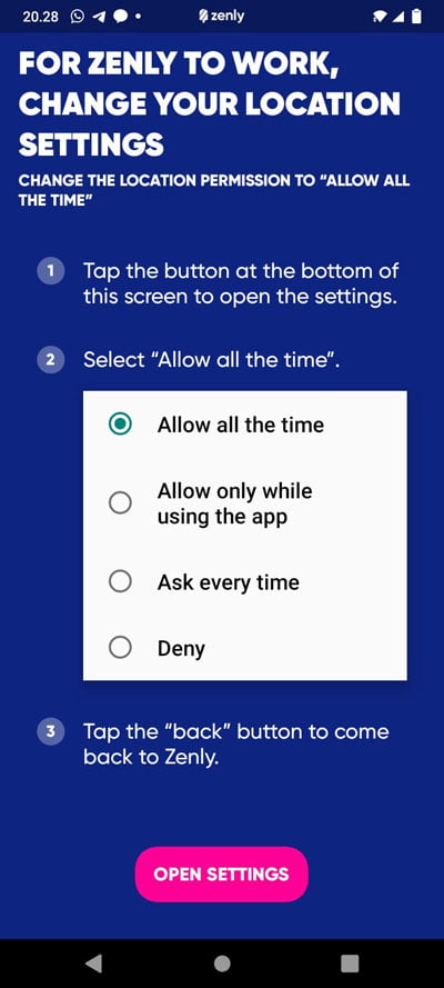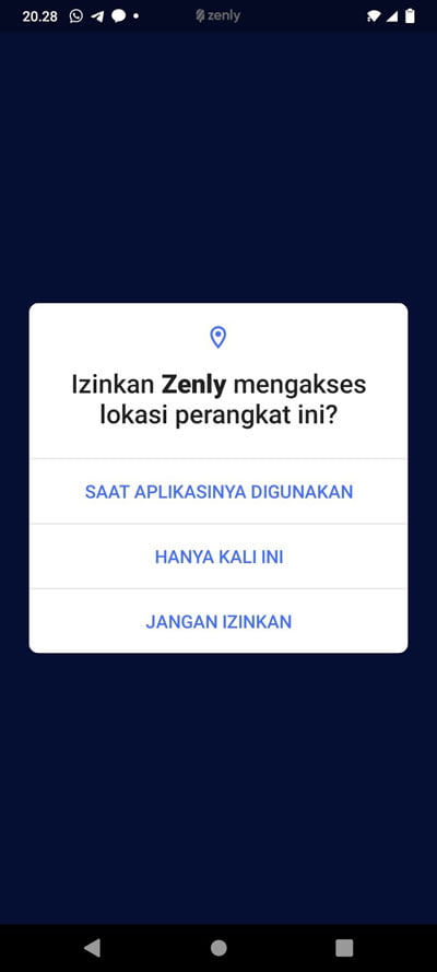 - Setelah selesai mendaftarkan akun, izinkan aplikasi untuk mendapatkan akses lokasi dari smartphone Anda dengan menekan tombol Allow.