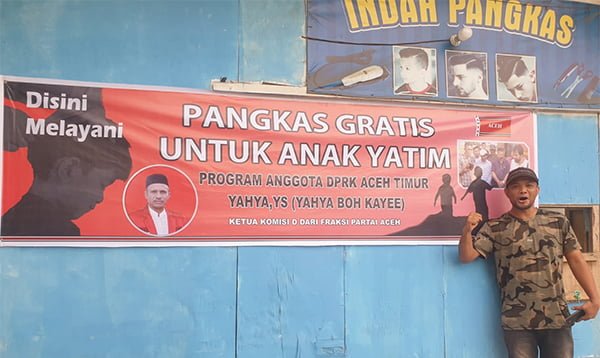 FREELINENEWS.COM | ACEH TIMUR – Perdana di Aceh Timur, Ketua Komisi IV DPRK Aceh Timur, M. Yahya, YS atau yang akrap disapa Yahya Boh Kayee, berbagi pangkas gratis untuk anak yatim dalam wilayah Aceh Timur.