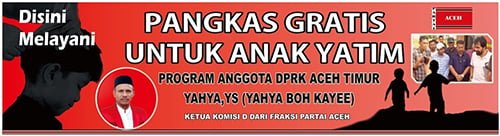 Sebutnya, untuk Idi Rayeuk ada dua titik, Julok, Bagok, Banda Alam, Idi Tunong, Peudawa, Madat, Pante Bidari dan Idi Cut. “Bagi Anak yatim dalam wilayah Aceh Timur silahkan datang ke kedai pangkas yang terpasang spanduk Pangkas Grasti Untuk Anak Yatim Program Yahya Boh Kayee,” ucapnya. (Lihat Spanduk di Bawah Ini)