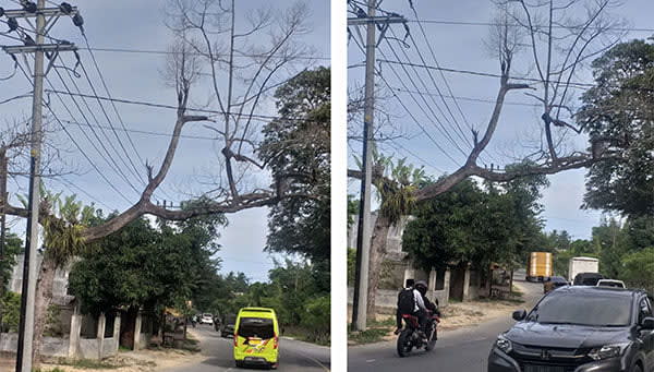 Tambahnya, ranting kering yang ada dipohon tersebut terlihat sanghat berbahaya karena posisinya melintang di atas badan jalan. “Hal seperti ini jangan dibiarkan saja, karena dapat menimbulkan kerugian dan jatuh korban masyarakat. Pemerintah daerah dalam hal ini dinas terkait untuk segera melakukan penebangan pohon tersebut,” demikian Abdul Rauf warga Idi Rayeuk, Aceh Timur. []