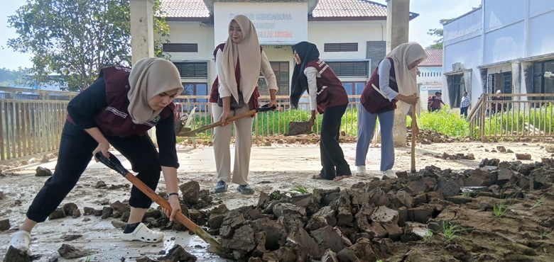 Sisa lumpur masih ada di ruang Aula dan gedung serba guna. Di halaman depan, samping dan belakang kantor masih berlumpur bahkan ketika diinjak kaki bisa masuk terbenam ke dalam endapan lumpur yang dibawa banjir bandang, akhir November lalu.