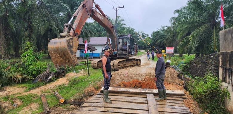Pada Sabtu (27/12/2026) perusahaan kini perusahaan PKS Bugak Palma Sejahtera (BPS) dan PT Tualang Raya mengerakan alat berat escavator untuk perbaikan jembatan Pelita Sagop Jaya, Kecamatan Indra Makmur.