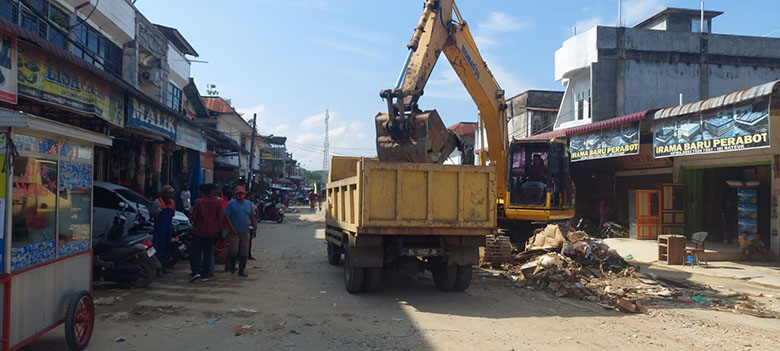 FREELINENEWS.COM | ACEH TIMUR – UPTD Pelabuhan Perikanan Nusantara (PPN) Idi, mengerahkan satu escavator dan satu dumtruk guna membantu warga membersihkan ruas jalan dan area perkotaan dari sampah banjir yang melanda Ibu Kota Kabupaten Aceh Timur.