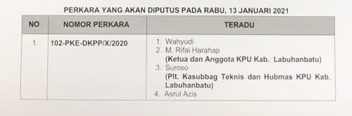 Keputasan merehabilitas nama baik dijatuhkan kepada teradu enam, yaitu saudara Maimun selaku ketua dan merangkap Anggota Panwaslih Aceh Timur. Seperti ditulis dalam pers relis DKPP Pusat, Putusan tersebut digelar dalam Agenda Pembacaan Putusan terhadap 17 Perkara di Ruang Sidang DKPP, Gedung DKPP, Jakarta Pusat, pada Rabu (13/1/2021) pukul 09.30 WIB.