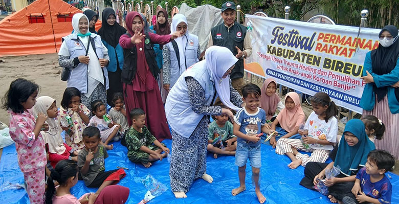 Menurutnya, trauma healing ini sangat diperlukan dalam kondisi pasca bencana banjir di Kabupaten Bireuen. Kegiatan bagi anak-anak yaitu mereka bermain sambil bernyanyi dan paling utama shalawat bagi kita masyarakat Aceh dan nilai-nilai spiritual ini tetap di utamakan bagi anak-anak.